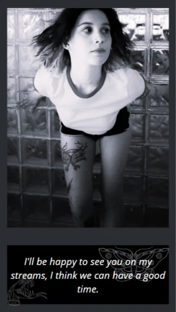 Ahegao, Flashing, Doggy Style, Oil Show, Erotic Dance, Striptease, Camel Toe, Dirty Talk, Nipple Toys, Smoking, Masturbation, Orgasm, Upskirt, Cowgirl, Spanking, Tittyfuck, Topless, Humiliation
